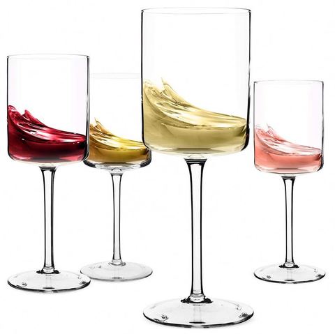 Grosir gelas piala kaca kristal Set kacamata anggur merah putih untuk pernikahan antik mewah ukuran besar Logo kustom tipis